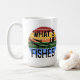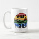 Uma caneca de café engraçada para os pescadores que diz "O que é que sobra peixe"