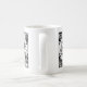 Uma caneca design gráfica arrojada para o amante ávido do chá. mão esquelética segurando uma xícara de chá com bordas florais. Preto e Branco.