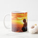Ótima ilustração de gorila e bebê na caneca, raios solares, simbolizando amor, proteção e esperança — ideal para manhãs inspiradoras. Poderoso e quente — um gorila e bebê que respira no pôr do sol, força de mistura e ternura. Uma caneca simbólica para manhãs consciente e reflexão.