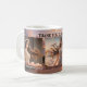 Imagem elegante com fotos próprias (opcional), enquadrada por uma pintura de uma costa. Uma caneca adorável para dizer Obrigado às suas damas de honra ou personalizável para outras situações.