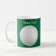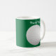 Obrigado golf a caneca que de café dos presentes você pode personalizar com sua própria mensagem ou personalizar o texto. Grande imagem da bola de golfe e fundo verde. Dê esta caneca de café da bola de golfe como um artigo incorporado dos presentes do golfe ou apenas obtenha um para um amigo ou uma família.