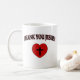 A frase, "agradece-lhe Jesus" escrito no preto no vermelho acima de um coração vermelho com cruz simples no centro.