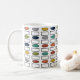 Esta caneca tem uma design moderna do século médio de retângulos e ovais repetidos em cores retrorreflectoras.