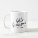 Esta adorável caneca de café será um complemento perfeito para a sua cozinha ou mesa de escritório. Este design apresenta a citação "olá bonito" em uma fonte preta manuscrita e é acentuada com um traço preto.