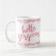 A caneca super-divertida apresenta pontos de anzol aleatórios e as palavras "Hello Gorgeous" em um tipo de caligrafia de pincel de na moda em rosa. Design pelo The Spotted Olive™. Copyright ©2015 por The Spotted Olive. Todos os Direitos Reservados.
