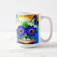 Café Mug com pintura animal de Louis Wain Olhos Flores de Gato (1860-1939). Um gato arco-íris sorri muito. Flores azuis cobrir seus olhos. Um presente maravilhoso para amantes de gatos e arte inglesa.