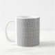 Esta caneca tem um design de Arte de linhas pretas curvas em forma de triângulo em um campo de branco repetido na design.