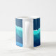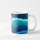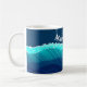 A onda abstrato em tons de azul e aqua em um fundo azul escuro cria uma linda e dinâmica caneca. Personalize com seu nome em texto curvo que segue a forma de onda.