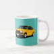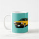 Opel amarelo retro Kadett Coupé. Opel Kadett C é um carro de família clássico alemão famoso pequeno dos anos 70. Você pode personalizar uma caneca de café mudando o estilo e a cor do fundo da caneca. Mova e resize a ilustração e adicione seu próprio texto. Caneca de café agradável do automóvel para fãs de Opel.