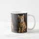 Uma ilustração digital mostra um gato sentado com um casaco rico e marrom-ouro com faixas intrincadas, posicionadas contra um pano de fundo de cinzas escuras. Um presente de excelente para aquele amante de gatos em sua vida!