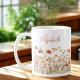 Aproveite uma bebida quente em estilo com esta caneca de cerâmica decorada com flores silvestres de cor d'água em forma laranja. Personalize com o seu nome ou com o de um amado.