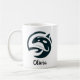 Caneca personalizada com um na moda e uma ilustração redonda moderna de uma orca com uma mão humana mostrando amor orca.