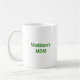 Mug com "Mãe Orgulhosa" na frente em letras verdes; personalizado nas costas com o nome da mãe ou da criança.