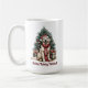 Obtenha o presente de Natal perfeito para amantes do Ouro Retriever! Nome personalizável nesta adorável caneca de café com Papais noeis e um bonito Ouro Retriever.