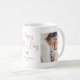 Esta maravilhosa caneca de fotos do Dia de as mães Feliz apresenta um fundo branco com a falsa tipografia moderna da escrita rosa dourada. Adicione duas fotos dela e da família, com espaço para personalizar com nomes e anos.