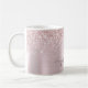 Caneca Personalizada Elegante Rosa Bege Brilho Dourado Rosa Glitter Ombre Metálico Monograma Nome Script. Estes desenhos apresentam seu primeiro nome em um estilo de letra manuscrita bonita com fonte de cauda swash, assinatura de caligrafia ou tipografia em folha metálica falsa rosa bege dourado rosa com borda glamourosa brilhante e glitter. São fáceis de personalizar. Ótimo presente feminino e elegante para aquecimento de casa, também para aniversário, dia das mães, casamento, festa de 16 anos, chá de noiva, chá de bebê, festa de formatura e é para a garota que ama coisas únicas e estilosas com brilho.