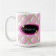 Bonito padrão de diamante colado rosa e verde. 3 d diamantes. A palavra "princesa" acentua cada lado da caneca.