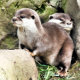 Um design fotográfico de um par de pequenas lontras muito bonitas. Inglaterra Reino Unido.