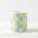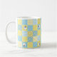 Uma bonito e divertida Coffee Mug, com um design Faux Patchwork de Ovelhas e padrões em Blues e Yellows, unida com a coordenação Check Ginghams e Polkas Dots.