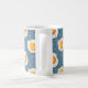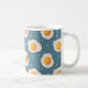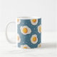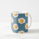 Um padrão de ovos fritos frescos em um fundo azul-céu. Bom dia café da manhã :)