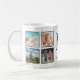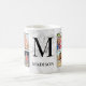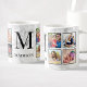 Crie sua própria caneca de café de colagem personalizada de 8 fotos com suas imagens personalizadas, monograma e nome em um fundo na moda elegante de mármore branco.