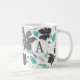 Uma caneca de café monogramada com cinza e padrão floral de menta. Uma caneca de café na moda que você pode personalizar! Este design tem um lindo padrão floral. Personalize a caneca de café com a sua inicial. Design pelo Emporium de Jenn.