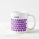 Esta exuberante flor de clematis roxa crescendo em meu jardim parece ousadamente proclamar, "Aqui estou eu!" Agora, esta flor pode adicionar alegria a cada festa de chá! Quando agrupados nesta caneca personalizada, eles formam um delicioso padrão geométrico. Use as ferramentas de design para adicionar seu nome a esta caneca ou produzir uma criação personalizada exclusiva.
