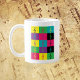 Você gosta de canecas com tema musical? Você é músico? Esta caneca tem um padrão de cores brilhantes de triplos feitos em amarelo, azul, verde, roxo, rosa e preto.