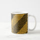 Bolinhas pretas e laranja com padrão de fundo diagonal.