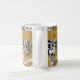 A palavra "namaste" está escrita nesta caneca em letras negras três vezes em orientação horizontal. A espiral e o padrão de mármore com um toque de sofisticação fazem desta elegante caneca de café um presente de chamas que certamente impressiona. Marble liquida em cores de amarelo ouro, bronzeado de café, preto e branco.