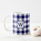 Caneca De Café Padrão de Xadrez de Gingham Branco Azul com Monogr