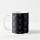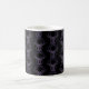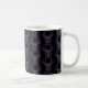 Um padrão final geométrico que lembra riachos de renda. Em roxo sobre fundo preto.