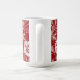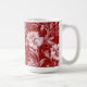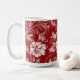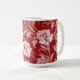 Esta caneca de café apresenta um padrão floral barroco em branco a vermelho.