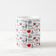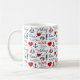 Padrão náutico sem costura com símbolos náuticos (barco à vela, âncora, ondas, cavalo marinho, concha) e decoração de corações vermelhos com design de texto sobre fundo branco