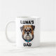 Este design simples e clássico apresenta um nome de cão personalizável para a tipografia, impressão "Pai de Luna" e fotografia de cão. Presente de animais de estimação personalizado para feriados. Adicione o chapéu de santa, ícones de papais noeis e mensagem de natal, você tem várias mensagens de animais de estimação, piada ou trocadilho de animais de estimação ou opções de meme personalizado. Design de presente ideal para pai de cão. Facilmente personalizável para outros animais de estimação, mãe e pai. Carregue fotos de cão ou gato, atualize o texto e você tem um presente exclusivo de cachorro de Natal. Ideal para o Natal, aniversário e muito mais. Personalize e personalize para fazer mãe de cachorro, mãe de gato ou presente de pai para o Natal e muito mais. Solteiros, amantes de animais de estimação... caneca de presente para feriados, festa de Natal, Natal e muito mais.