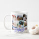 Deixe o pai saber o quanto ele é amado com esta caneca de café de colagem de fotos moderna, apresentando dez (10) fotografias de sua escolha que podem ser facilmente baixadas de seu telefone ou computador em um fundo branco clássico, o texto - PAI no azul-céu colorido em texto em negrito com a elegante letra azul-caligrafia do marinho 'nós te amamos' no topo. Personalizar adicionando nome(s). Esta caneca é o presente perfeito para as crianças nos aniversários, dias de os pais ou natal.