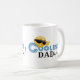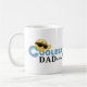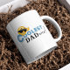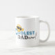 Pai vai especial toda manhã bebendo sua bebida favorita fora desta caneca sabendo o quanto você o admira! A fonte Boldt soletra o "Pai mais legal do mundo!" com um emoji feliz vestindo óculos de sol espiando-se no topo.