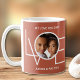 Essa Mug Foto de Pai Ama-o é decorada com a palavra AMOR em tipografia branca em fundo de terracota ferrugem. Facilmente personalizável com sua foto e seu nome. Perfeito como presente de Dia de os pais.