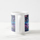 Uma caneca com uma bela ilustração. Vírus caprichoso e fantasioso. Uma lua grande brilhando com estrelas ao redor. Passando por uma bela paisagem de árvores, montanhas e um rio sinuoso. Incrível vibração mística mágica.