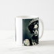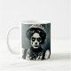 Imagem assombrada por palhaço na caneca de cerâmica gótica, design de circo vintage assustador, xícara de café de halloween. Ponha sua bebida favorita com um toque de macabro. Esta caneca assombrada apresenta um retrato arrepiante ao estilo da vintagem que parece ter saído hetero de um circo assombrado. O design preto-e-branco estrelado e o olhar estranho criam uma vibração ousada e gótica perfeita para amantes da arte de terror, da moda do alternativo e dos acessórios assustadores. Ideal para as manhãs de Halloween, noites de filmes de terror, ou estilo gótico durante todo o ano, esta caneca de cerâmica durável é mais do que apenas teia de bebidas—é uma peça assustadora de arte funcional que você vai querer mostrar.