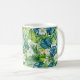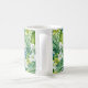 Esta caneca de café cerâmica é mostrada em um adorável impressão de flores tropicais de palma. Personalize este item ou comprar como está. Imagem licenciada