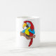 Um papagaio colorido segurando uma pasta. Esta design parece realmente eficaz nesta Mug