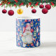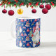 Adicione seu Monograma ou Iniciais a este Gnomo de Papais noeis para a Mug de Café Azul Padrão de Natal. Um padrão de fundo azul com gnomos, presentes, Holly, canas doces, árvores de Natal e saco de Papais noeis. Personalize com suas iniciais. Edite-o para mais personalização.