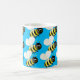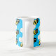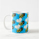 Ilustração bonito de um enxame das abelhas dos desenhos animados que voam aproximadamente contra um fundo azul. Imagem disponível em vários presentes e produtos.