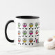 Caráteres coloridos brilhantes em uma caneca para iluminar as manhãs as mais adiantadas.