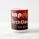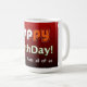 Esta brilhante e alegre caneca de café de aniversário feliz de todos nós com fundo vermelho e letras brancas e laranja serve tanto como presente para os empregados e clientes quanto como presente de aniversário para os amigos e familiares.