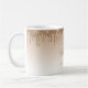 Esta caneca chic, glamourosa de aniversário de 80 apresenta uma borda cintilante de brilho dourada e fundo ombre dourado. Personalize-o com seu nome em um guião de escrita manual dourada, com o aniversário e a data abaixo na letra sans serif.