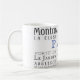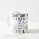 Paris e seus marcos na tipografia vintage, preto em branco com sotaque azul. Você não precisa ser francófilo para querer ter esta imagem de excelente para adicionar à sua coleção de canecas!