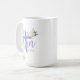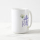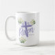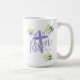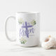 Esta caneca de café de cerâmica é mostrada em uma impressão de Páscoa Ele Ressuscitou.