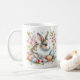 Mug de coelho com flores de cereja e ovos de Páscoa. Personalizável.